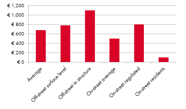 The total number of parking spaces in the 28 EU countries is estimated to be 440 million, approximately two spaces for every passenger car. Of these, some 40 million parking spaces are regulated in one way or another: